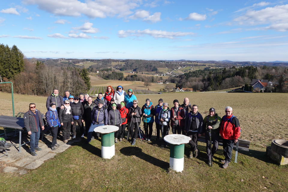Nach 2 Absagen konnten wir unsere 1.Winterwanderung in Frannach starten,und die Sonne war unser begleiter.Vom Ortskern In Frannach spazierten wir auf den Asphalt,Wiesenwege und Wälder durch die sanfte Hügellandschaft des Grabenlandes. Es gibt einige schöne Rastplätze wie die Aussichtsplattform – Herzerlbank...., und liebevoll gestaltete Stationen am Weg.
